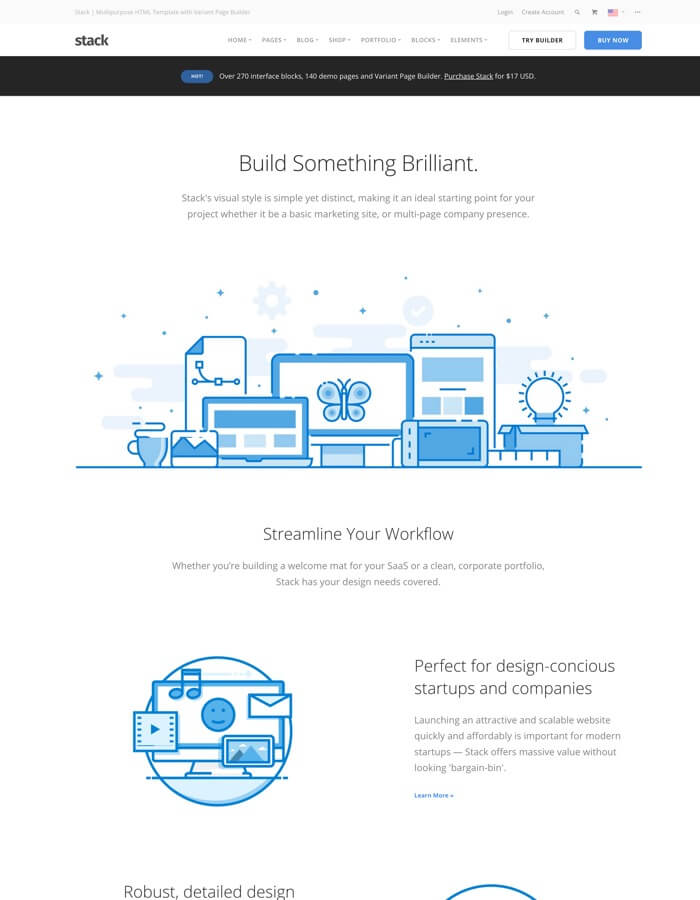 HOT! Over 280 interface blocks, 150 demo pages, Variant Page Builder and Visual Composer. Purchase Stack for $59 USD.